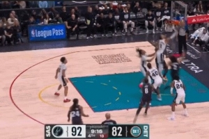 GIF-坎寧安拉桿上籃再被文班大帽扇出界