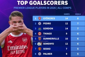 英超球員2026年各項賽事進(jìn)球排名: