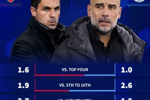 體育資訊2月25日訊 在多賽一場的情況下,英超領頭羊阿森納目前僅領先位居次席的曼城5分。如今,英超冠軍之中越來越激烈。德國轉會市場盤點了兩隊面對其他英超球隊時的積分情況。