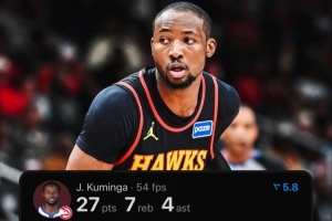 本場(chǎng)比賽,老鷹新援庫(kù)明加迎來首秀,他替補(bǔ)出戰(zhàn)24分27秒,12中9,其中三分4中3,罰球7中6,得到27分7籃板4助攻2搶斷,正負(fù)值+16。