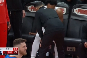 下一篇: 望無礙!華盛頓踩到克洛尼出現(xiàn)90度崴腳 一瘸一拐回到更衣室