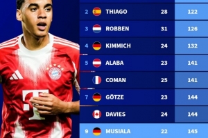 體育資訊2月25日訊 在拜仁3-2擊敗法蘭克福之后,穆西亞拉達(dá)成生涯100場德甲勝利里程碑,用時145場比賽能夠位列歷史第9少,以下為最快達(dá)成德甲百勝場次榜:
