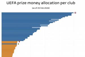 體育資訊02月25日訊 專(zhuān)業(yè)數(shù)據(jù)媒體Football Meets Data統(tǒng)計(jì)了目前三級(jí)歐戰(zhàn)獎(jiǎng)金情況,其中拜仁9980萬(wàn)歐最多,歐聯(lián)杯最多的羅馬僅比歐冠最少的阿拉木圖凱拉特多90萬(wàn)歐。