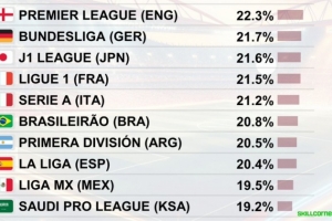全文摘要:根據(jù)CIES數(shù)據(jù),英超以22.3%的高速跑動距離占比位居全球聯(lián)賽榜首,展現(xiàn)最高強度的比賽節(jié)奏。德甲(21.7%)與J聯(lián)賽(21.6%)分列二、三位,而西甲僅排名第八(20.4%),凸顯其風(fēng)格差異。
