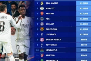 體育資訊2月26日訊 本賽季歐冠16強(qiáng)全部產(chǎn)生,德轉(zhuǎn)也盤(pán)點(diǎn)了16強(qiáng)球隊(duì)身價(jià)榜,具體如下: