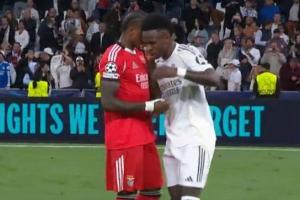 葡萄牙媒體記錄報報道,賽后氣氛友好,維尼修斯與本菲卡球員們擁抱致意,本菲卡后衛(wèi)卡布拉爾向維尼修斯要球衣。