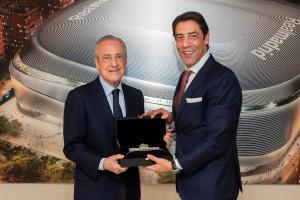 據(jù)皇馬官方介紹,互贈(zèng)禮物儀式在伯納烏的皇馬主席包廂進(jìn)行。