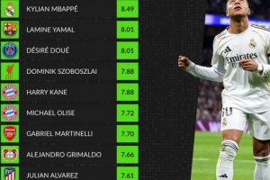 體育資訊2月27日訊 本賽季歐冠淘汰賽即將打響,數(shù)據(jù)網(wǎng)站W(wǎng)hoscored也盤(pán)點(diǎn)了本賽季歐冠16強(qiáng)球員場(chǎng)均評(píng)分榜,具體如下: