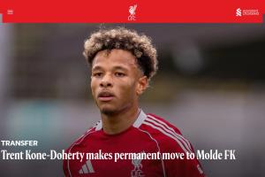體育資訊2月28日訊 利物浦官方宣布,19歲邊鋒特倫特·科內(nèi)·多爾蒂加盟莫爾德,據(jù)悉轉(zhuǎn)會費75萬歐元,這筆交易包含了回購條款以及二轉(zhuǎn)分成條款。