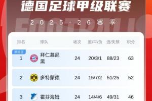 體育資訊03月01日訊 德甲第24輪德國國家德比,拜仁3-2逆轉多特,現(xiàn)11分領跑積分榜。最新德甲積分榜如下: