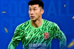 成都蓉城隊門將劉殿座榮獲“2025中國金手套獎”,成都蓉城B隊小將帥惟浩榮獲“2025中國金童獎(U17)”,祝賀他們!