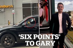 內(nèi)維爾在一個紅燈前停車時,一只手握著方向盤,另一只手拿著手機,并在車輛啟動后繼續(xù)保持該狀態(tài)。根據(jù)法律,這一行為可能導(dǎo)致200英鎊的罰款和駕照被扣6分。