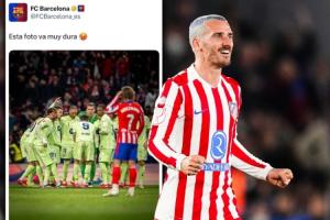 賽后格列茲曼曬出慶祝照,背景是出局后癱倒的巴薩球員。格列茲曼同時(shí)寫道:“這張照片太狠了”。