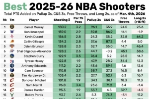 本賽季最準(zhǔn)30人:穆雷斷層領(lǐng)跑 杜庫(kù)卡華亞登&謝潑德肯納德上榜