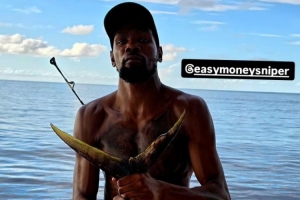 休賽期,杜蘭特在巴哈馬與新隊(duì)友共度時(shí)光,加入了一次由史蒂文-亞當(dāng)斯、杰肖恩-泰特和凱文-哈里斯組織的釣魚(yú)之旅。