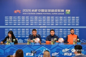 客場對陣云南玉昆前,主教練米蘭攜隊長梅薩烏迪賽前出席發(fā)布會。