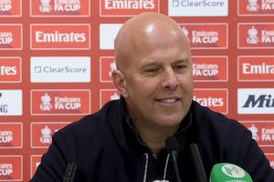 斯洛特:他熱愛這家俱樂部,熱愛在這些球迷面前踢球。順便說一句,這些球迷太棒了,在三天前那么失望之后,周五晚上又再次來到這里。我不確定是否都是同一批人,但人數(shù)肯定更多了,因為足總杯允許更多客隊球迷。