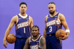 布克全場出戰(zhàn)35分20秒,21投10中(三分12中5)、罰球8中7,轟下全場最高32分外加4籃板4助攻2搶斷,4次失誤瑕不掩瑜,正負(fù)值+1。