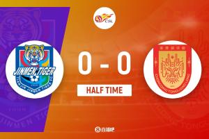 上半場補時5分鐘。半場戰(zhàn)罷,天津津門虎0-0重慶銅梁龍。