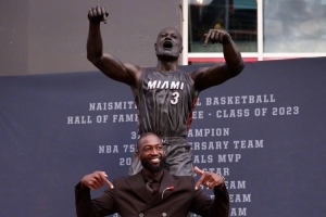 全文摘要:熱火名宿韋德談其雕像制作過程。他表示,從泥塑到銅像成品變化巨大,全程參與。他特意選擇了標(biāo)志性的“this is my house”瞬間來定格情感,而非簡單動作。他坦言雕像不像自己,并幽默地舉例喬丹的雕像也不像。