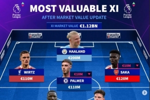 體育資訊3月10日訊 德轉(zhuǎn)在北京時間3月9日更新了英超球員身價,并列出了更新后英超身價最貴陣,哈蘭德2億歐領(lǐng)銜,凱塞多、維爾茨在列,11人中有阿森納5名球員。