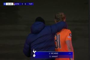 體育資訊03月11日訊 熱刺vs馬競,熱刺開場連丟三球,教練直接把門將金斯基換下。下場后金斯基直接進(jìn)了通道,球隊(duì)的工作人員趕上去安慰他。