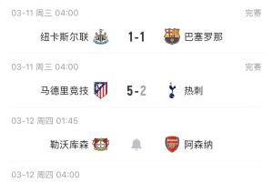 利物浦率先出戰(zhàn)客場(chǎng)0-1不敵加拉塔薩雷,紐卡主場(chǎng)1-1遭巴薩絕平,熱刺則是客場(chǎng)2-5慘敗。