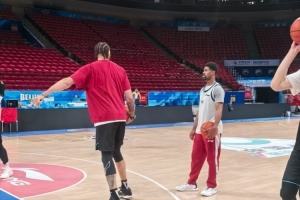 賽前,北京隊眾將進(jìn)行踩場訓(xùn)練,四外援悉數(shù)在列,新援麥基一同亮相。