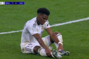 體育資訊03月12日訊 皇馬vs曼城,瓊阿梅尼第64分鐘受傷,在場邊接受治療,隨后暫時回到了比賽!