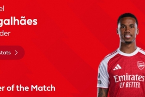 本場比賽加布里埃爾首發(fā)出場發(fā)揮穩(wěn)健,貢獻8次解圍,賽后當(dāng)選英超官方評選出的本場比賽最佳球員。