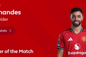 2助攻+6關(guān)鍵傳球,英超官方:B費(fèi)當(dāng)選曼聯(lián)3-1維拉全場(chǎng)最佳