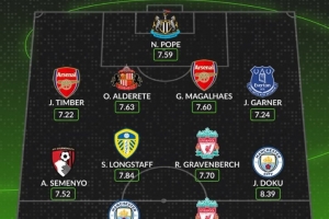 體育資訊10月1日訊 數(shù)據(jù)網(wǎng)站W(wǎng)hoscored盤點(diǎn)了英超9月場均評分最高陣容,具體如下: