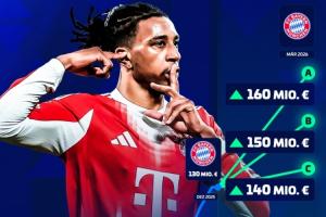 體育資訊03月17日訊 德轉將在3天后更新德甲球員身價,今日德轉官方預熱奧利塞身價,將必定上漲,最高漲至1.6億歐。