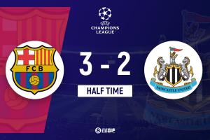 半場(chǎng)結(jié)束,巴薩暫3-2紐卡。