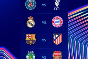 全文摘要:歐冠1/4決賽對(duì)陣及賽程出爐。首回合于4月8日、9日凌晨開打,皇馬對(duì)拜仁、阿森納對(duì)葡體同場(chǎng)競(jìng)技,巴黎戰(zhàn)利物浦,巴薩對(duì)陣馬競(jìng)。次回合于4月15日、16日凌晨進(jìn)行,對(duì)陣雙方互換主場(chǎng)。