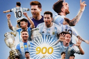 體育資訊3月19日訊 美洲杯1/8決賽次回合,邁阿密國際1-1戰(zhàn)平納什維爾,梅西達成生涯900進球里程碑。