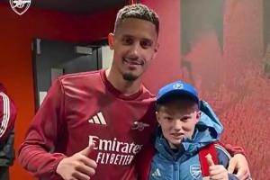 阿森納官方曬出視頻,薩利巴對(duì)球童說(shuō)道:還好嗎?上次很抱歉。隨后薩利巴將自己的球衣送給這名球童
