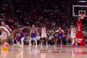 GIF-斯瑪特和東契奇在很高的位置包夾,杜蘭特失誤,斯瑪特助攻東契奇三分
