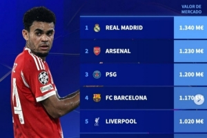 體育資訊3月19日訊 本賽季歐冠8強(qiáng)全部產(chǎn)生,德轉(zhuǎn)也列出8強(qiáng)球隊(duì)身價(jià)榜,具體如下: