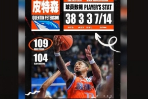 本場比賽,福建外援皮特森表現(xiàn)出色,進(jìn)攻端勢(shì)不可擋,外線神準(zhǔn)的同時(shí)殺傷力也很強(qiáng),最后時(shí)刻連續(xù)五罰全部命中,首發(fā)出戰(zhàn)30分鐘,投籃23中10,三分球14中7,罰球13中11,砍下38分3籃板3助攻3搶斷的數(shù)據(jù),正負(fù)值+12。