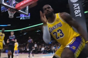 GIF-詹姆斯空切超高擦板上籃2+1