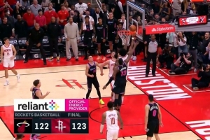 體育資訊3月22日訊 NBA常規(guī)賽,火箭123-122險(xiǎn)勝熱火。阿門最后補(bǔ)籃絕殺。