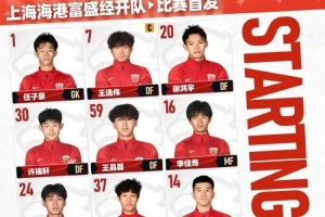 2026怡寶中乙聯(lián)賽第1輪,上海賽更達(dá)vs上海海港富盛經(jīng)開,今日首發(fā)名單。