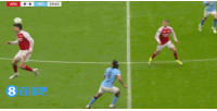 體育資訊03月23日訊 聯(lián)賽杯決賽,阿森納vs曼城,第29分鐘,B席與特羅薩德空中對抗,從身后撞倒了特羅薩德!