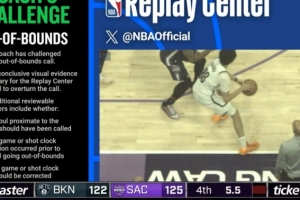 GIF-特拉奧雷進攻犯規(guī),籃網(wǎng)挑戰(zhàn),結(jié)果回放已經(jīng)踩邊線,挑戰(zhàn)失敗