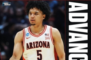 體育資訊3月23日訊 今日NCAA瘋?cè)?2強(qiáng)賽,賽區(qū)1號種子亞利桑那大學(xué)78-66擊敗賽區(qū)9號種子猶他州立大學(xué),晉級16強(qiáng)。