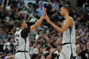 目前,雷霆57勝15負(fù)西部第一,馬刺54勝18負(fù)西部第二。