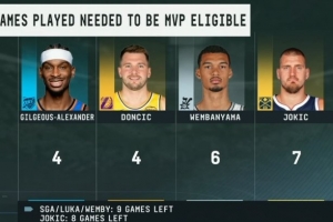備注:亞歷山大、東契奇、文班亞馬所在球隊(duì)常規(guī)賽還剩9場,約基奇還剩8場
