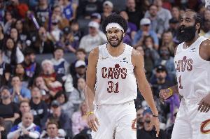 本場比賽阿倫時隔10場迎來復(fù)出,騎士本場首發(fā)為:哈登、米切爾、梅里爾、莫布里、阿倫。