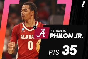 熱門秀小拉巴隆·菲隆出戰(zhàn)39分鐘21投10中,三分14中6,罰球9中9空砍35分7籃板4助攻。